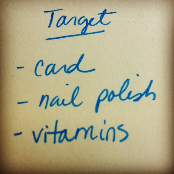 Yes, I love post-its and making lists. Are you surprised that the nail polish was not for me? It was actually a gift. :-)