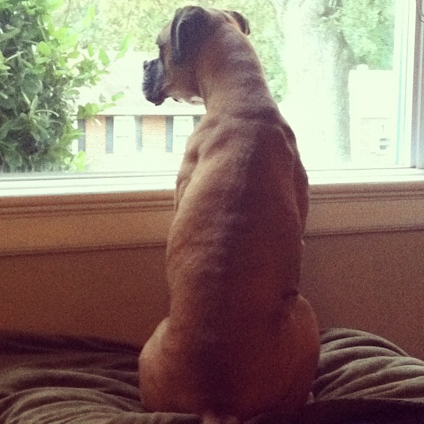 Jayme: Sometimes Cooper stalks the neighbors while waiting for his daddy to come home.